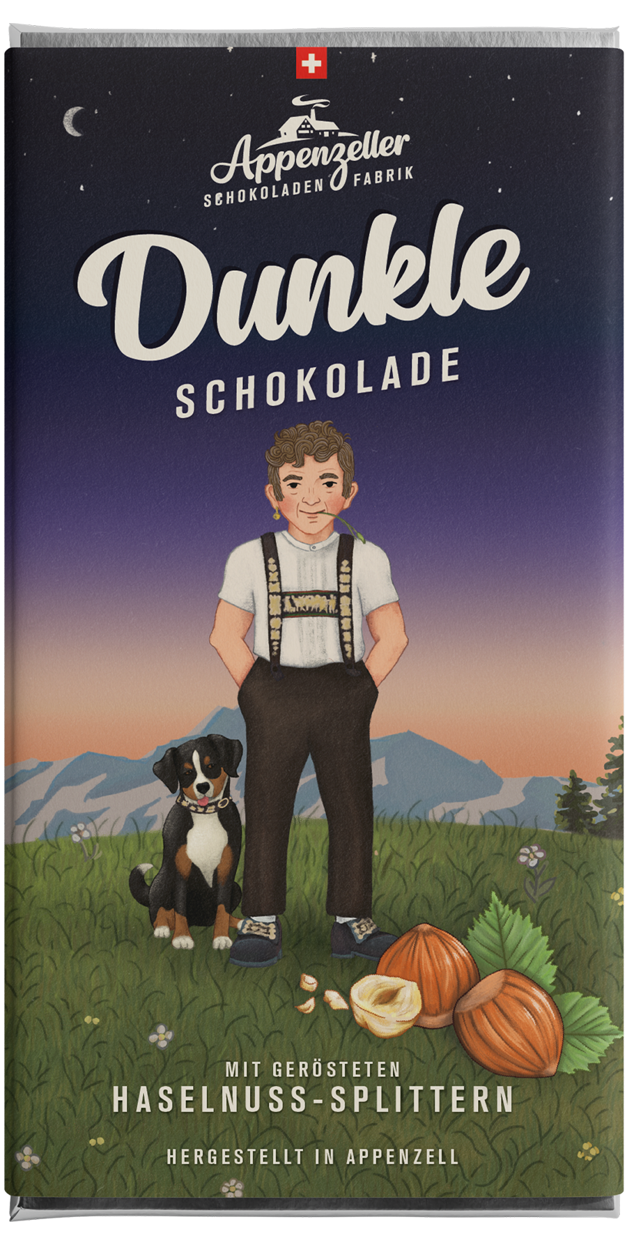 Kakaobohnen, Schweizer Zucker, 22 % Haselnuss-Splitter und ein Hauch von Vanille. Mit grösster Sorgfalt wählen wir die Rohstoffe für unsere Produkte aus. Produziert am Fusse des Alpsteins in Appenzell (Bean to Bar). Die hochwertigen Zutaten unserer Zulieferer bilden die Basis für grenzenlosen Genuss.